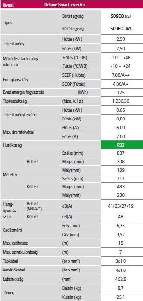 • Hűtő teljesítmény : 2,5 kW