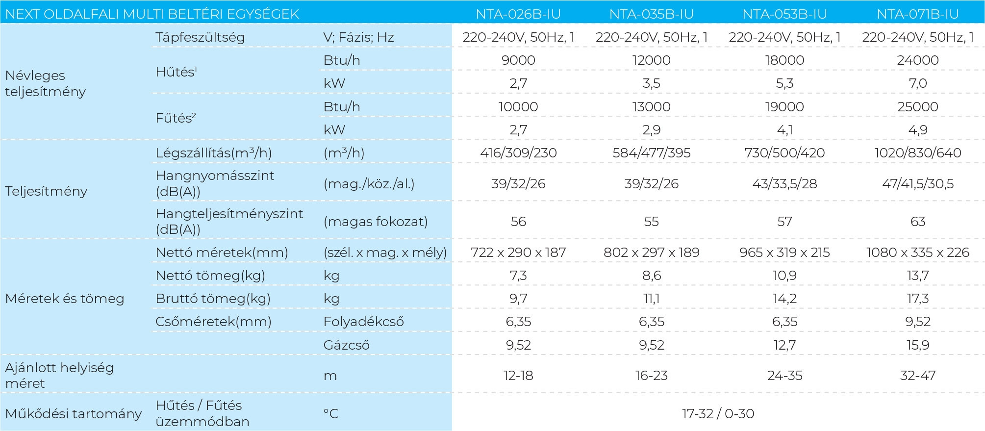 A MDV NTA-071B-IU Next oldalfali multi beltéri egység fontos tulajdonságai: