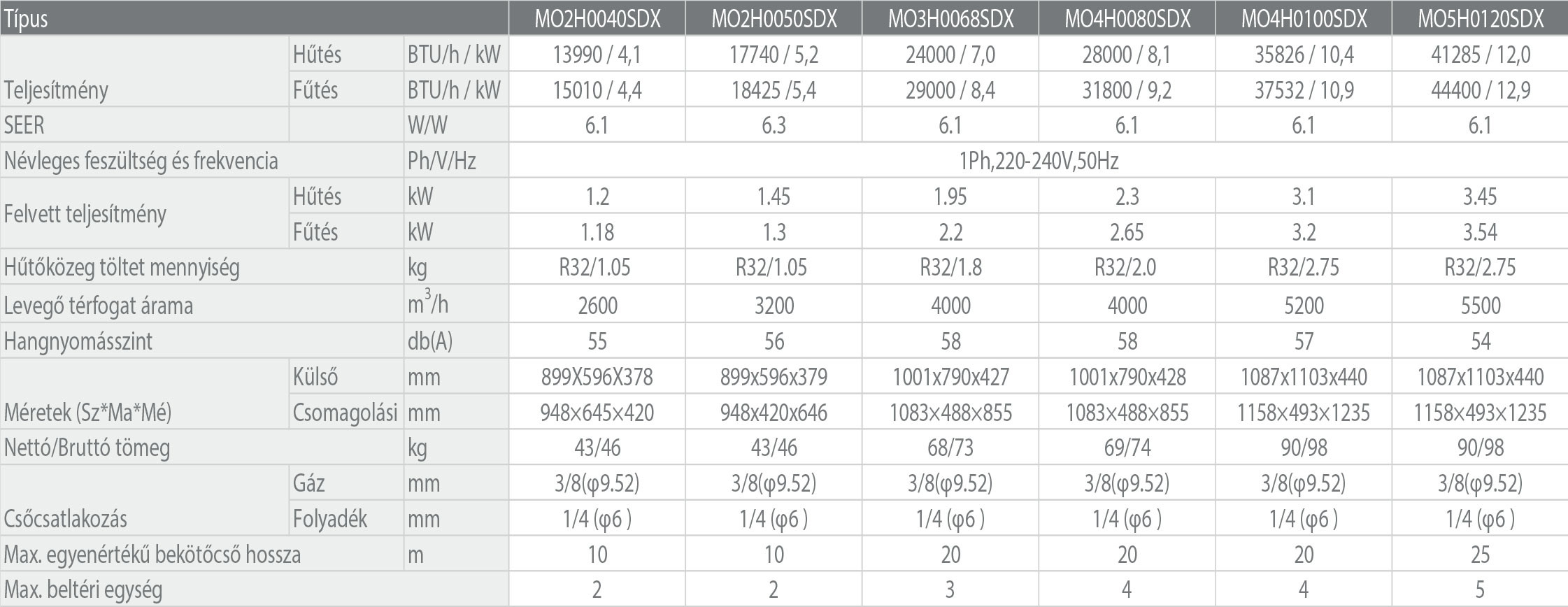 A Polar MO5H0120SDX Multi kültéri egység (max. 5 beltéri egységhez) (R32) fontos tulajdonságai:
